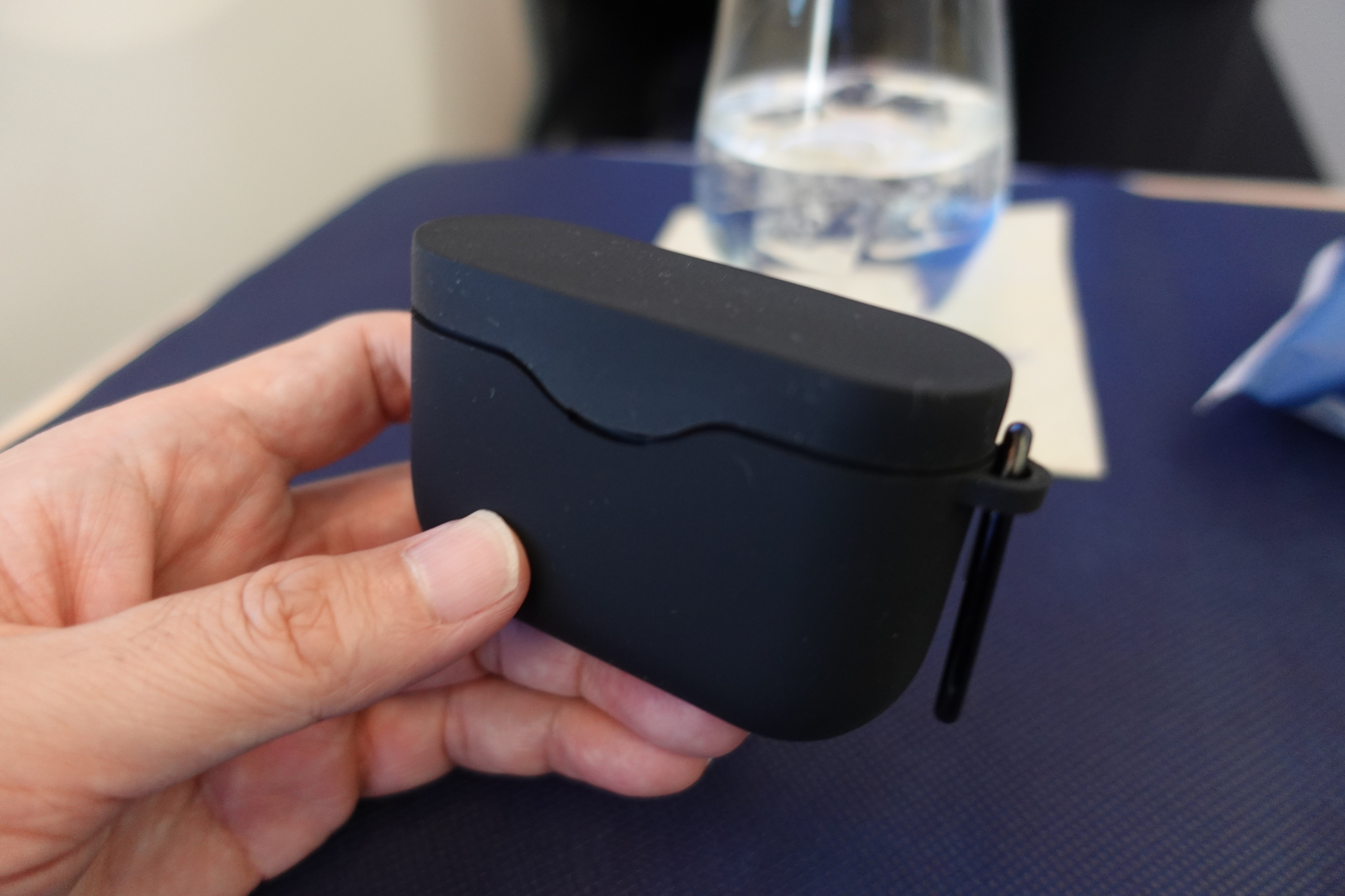 WF-1000XM3を耳に装着してノイズキャンセリングが効いた瞬間、機内で響き渡っていたゴオォォォーーーという飛行機独特の低音ノイズがすっと消え去り「静寂」が私を包み込みました。